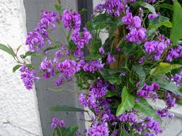 La Hardenbergia violácea o Hardenbergia violeta, llamada también Guisante de coral púrpura, es un arbusto trepador procedente de Australia. Forma una gran mata con muchas ramas de tallos largos, que deben sostenerse con la ayuda de una guía. Por ambos motivos, resulta muy adecuada para cubrir pérgolas y otras estructuras. Sus hojas son de color verde brillante, forma oval y alargada, y unos 7 a 12 cm de longitud.