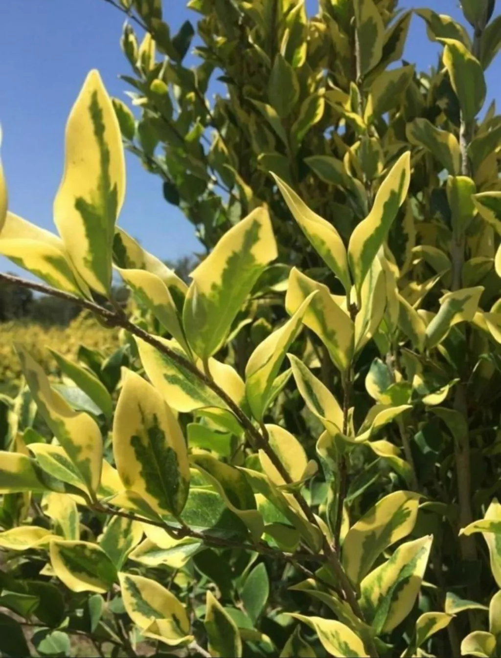 Las Oleas Texanas, también conocidas como Ligustro de Texas o Ligustrum japonicum ‘Texanum’, son arbustos perennes que varían en follaje desde verde oscuro (variedad verde) hasta un tono amarillo dorado (variedad áurea). Crecen de manera compacta y densa, alcanzando alturas de 1.2 a 2.5 metros, y son valoradas por su tolerancia a la poda, lo que las hace ideales para setos y borduras.