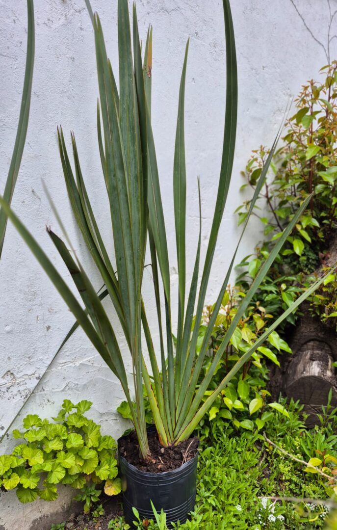 Planta de hojas alargadas de color verde intenso. Muy resistente, ideal para canteros y macetas en exteriores. Crecimiento lento, fácil mantenimiento y gran valor ornamental.